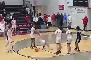 一拳KO!美国校园篮球赛发生冲突,一白人小伙被黑人小伙打昏