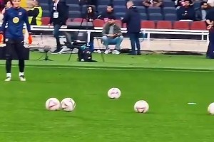 亚马尔和费尔明坐在球上探讨未来,一旁的巴尔德是真调皮~