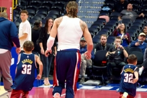 铁汉柔情!阿隆·戈登带着两个小侄子参加赛前热身