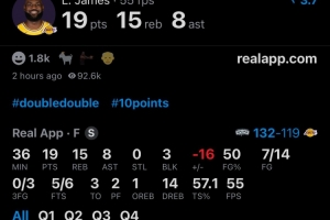 还差19天41岁!詹姆斯本场揽15板8助3帽 这三项数据均全队最高