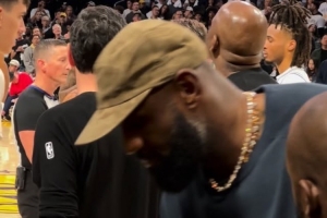 转型教练!湖人vs马刺花絮:詹姆斯场边与助教认真探讨比赛录像
