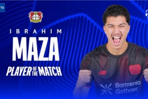 2次解围+3次抢断!马扎当选勒沃库森vs本菲卡全场最佳球员