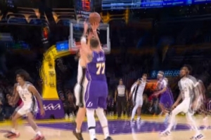 挡不住!东契奇胯下接撤步 迎着奥利尼克直接干拔三分再进!