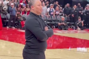 快船输火箭!火箭主场现场球迷拍摄泰伦卢对球队表现摇头无奈