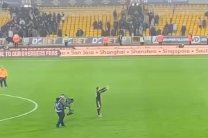 有情有义!库尼亚在比赛结束后,向狼队球迷挥手致意