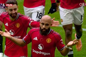 曼联1-0领先热刺!姆伯莫头球破门+摊手庆祝,阿玛德传中献助攻