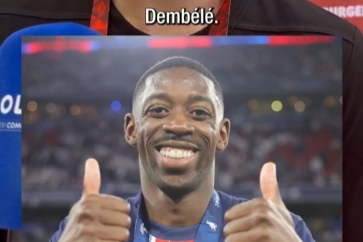 纳斯里表示:“登贝莱,首先因为我是法国人(笑),而且他这个赛季的表现非常好,他在巴黎赢得了一切(欧冠+法甲+法国杯+法超杯)。”