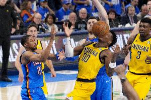 目前雷霆和步行者的总比分战至2-2,双方的G5将在早上8点30分进行。
