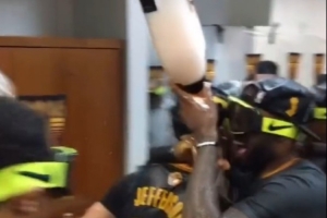 体育资讯6月20日讯 今日湖人球员詹姆斯更新IG动态晒出9年前率骑士夺冠后在更衣室疯狂庆祝的视频。