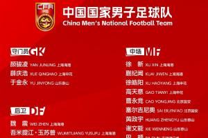 魏震(上海海港/28岁)、吾米提江(上海海港/21岁)、蒋圣龙(上海申花/24岁)、朱辰杰(上海申花/24岁)、吴少聪(北京国安/25岁)、高准翼(山东泰山/29岁)、汪士钦(浙江/22岁)