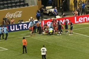体育资讯7月6日讯 世俱杯1/4决赛,巴黎圣日耳曼vs拜仁半场结束前,穆西亚拉与多纳鲁马撞在一起,脚踝严重变形,随后被担架抬走,而穆西亚拉才刚伤愈数天。