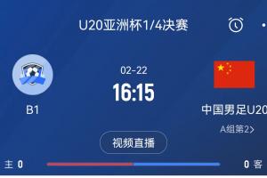 2月22日16点15分,U20国足将对阵B组第一,稍晚一些的19点30分,U20澳大利亚将对阵B组第二位。