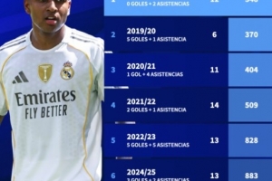 零球两助,罗德里戈赛季前15场仅出战348分钟比赛创皇马生涯新低