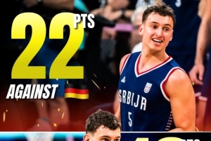 过去两场比赛,约维奇分别是对阵德国和斯洛文尼亚的比赛中砍下22分和18分,帮助球队取得胜利。