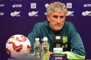 体育资讯08月24日讯 中超联赛第22轮,北京国安将在主场对阵武汉三镇。主教练塞蒂恩携队员柏杨出席赛前发布会。