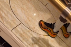 詹姆斯晒出他上脚Nike LeBron 23“黄金4万分”配色个人第23代签名战靴的自拍,并评论道:“👀👑”