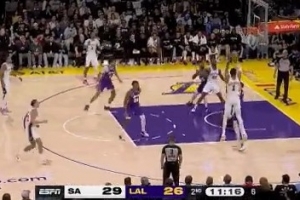 根本干扰不到!文班亚马低位碾着布朗尼命中翻身跳投