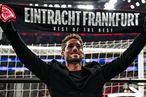 法兰克福门将特拉普今夏转会巴黎FC,法兰克福本场比赛之前向前队长致敬,并与之告别,球迷们为他送上了欢呼和掌声。