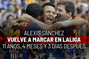 《马卡报》统计表明,桑切斯时隔11年4个月零3天再一次在西甲破门,他上一次在西甲进球是2013-14赛季代表巴萨攻破马竞球门。