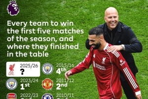 据英超官方统计,英超历史上共有14支球队赛季开局5连胜(包括本赛季利物浦),此前做到这点的13支球队之中,4支球队最终赢得当赛季英超冠军,分别是切尔西(2次)、利物浦和曼城。