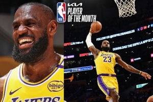 这是詹姆斯生涯第41次荣获月最佳球员,继续刷新历史第一纪录。
