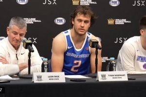 德根哈特22岁,身高6尺7,体重235磅。在代表博伊西州立大学出战的138场比赛中,场均能得到14.8分5.3篮板1.4助攻1.1次抢断,三项命中率分别为52%、35%、78%。
