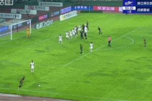 体育资讯09月26日讯 中超第26轮,浙江vs蓉城,浙江补时阶段头球攻门,刘殿座起跳神扑救险。