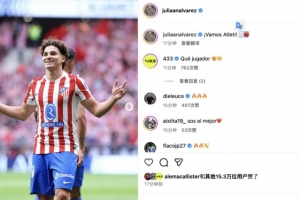 体育资讯9月28日讯 马竞5-2击败皇马,赛后发挥出色的阿尔瓦雷斯发文庆祝胜利。