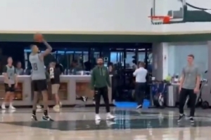 艾顿今天9个进球都是在内线 场均内线得分15分 联盟第2仅次于字母
