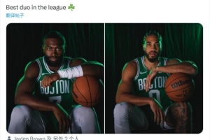 体育资讯10月5日讯 凯尔特人官推晒出杰伦-布朗和塔图姆新赛季的定妆照。