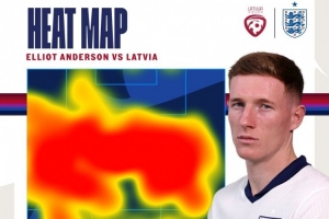 此役埃利奥特-安德森踢满全场,帮助英格兰取胜。英格兰队社媒晒出埃利奥特-安德森本场比赛的热区图片,这位中场球员的覆盖范围极大。