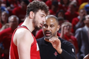 体育资讯10月22日讯 NBA常规赛揭幕战,火箭对阵雷霆的比赛已经进行到末节。