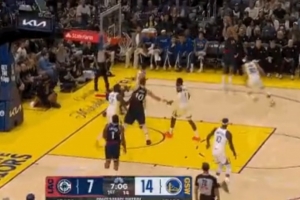 库里上篮被包夹撞飞&身体都被撞歪了 裁判没有表示