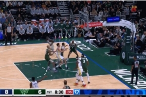 手感不佳!博格丹上半场5中1得到4分3板3助 三分3中0
