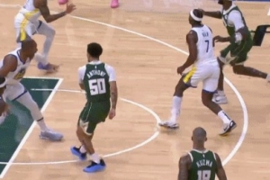 身高相差悬殊!亚历山大篮下护筐!正面血帽祖巴茨扣篮