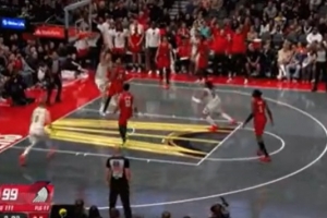 詹姆斯炸裂隔扣&海斯在一旁怒吼更夸张 后者转发同框照