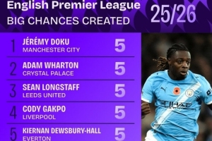 体育资讯11月11日讯 英超联赛已经进行了11轮,squakwa也统计了本赛季英超创造重大机会情况,多达8人并列居首。