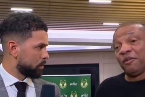 体育资讯11月18日讯 今日对阵骑士的赛前,奥斯汀·里弗斯作为记者采访了自己的爸爸、雄鹿主帅道格·里弗斯。
