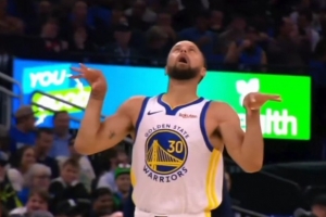 GIF-库里投中三分后扮鬼脸嘲讽萨格斯