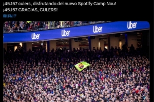 体育资讯11月23日讯 巴萨官方发布数据,重返诺坎普的首战共有45157名观众现场观赛。