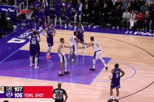 东契奇两罚一中,湖人领先2分