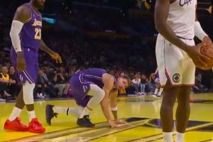 斯玛特三分不中后和尚帕尼双双倒地 裁判就在眼前但毫无表示