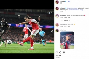 梅里诺社媒:欧冠积分榜首,马丁内利、马杜埃凯射门技惊四座!