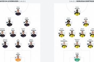 体育资讯11月30日讯 勒沃库森将在本轮德甲焦点战迎战多特蒙德,两队首发已经公布,阵型均为3421:
