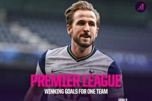 英超历史上,为单一俱乐部贡献制胜球最多的榜单: