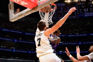 谈到詹姆斯隔扣科内特。里夫斯感叹道:“简直不要太棒,一个41岁的人,真令人叹为观止。”