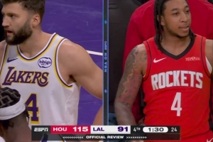 防守中坚!戈贝尔半场3中2拿到5分7板3帽但有3犯规 正负值+13