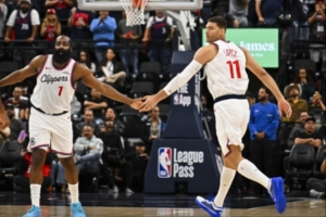 快船(9-21):哈登34分2板6助、洛佩斯31分5板1助2帽、莱昂纳德28分8板6助3断、科林斯8分3板1助、邓恩7分3板4助2断、桑德斯5分4板1助、米勒3分3板1助、巴图姆3分2板1助、尼德豪泽2板2帽