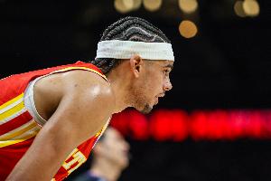 不愧新鹰王!杰伦·约翰逊半场填满数据栏 13中8怒轰18分7板3助