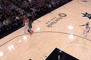 神来之笔!科内特捡到前场篮板 失衡强投打2+0并造唐斯6犯离场